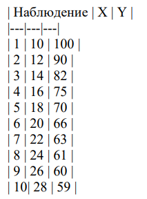 1. Имеются данные о цене на товар (X, руб.) и объеме спроса на него (Y, шт.):