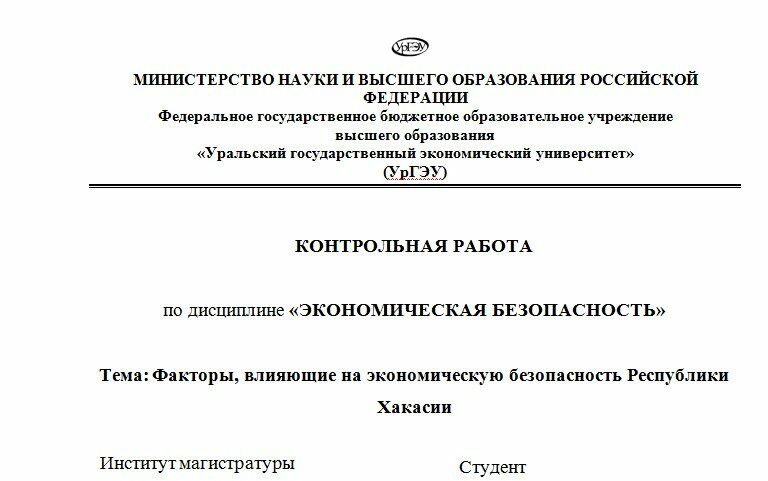 Для студентов УрГЭУ по предмету Экономическая безопасностьФакторы, влияющие на экономическую безопасность Республики ХакасииФакторы, влияющие на экономическую безопасность Республики Хакасии