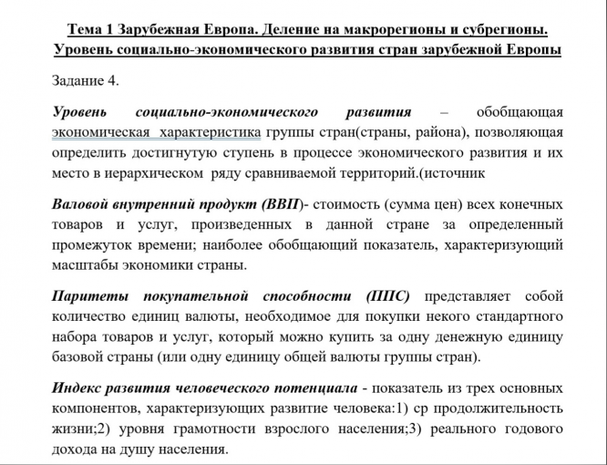 Тема 1: Зарубежная Европа. Деление на макрорегионы и субрегионы. Уровень социально-экономического развития стран зарубежной Европы