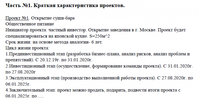 Сравнительная оценка двух инвестиционных проектов "Открытие суши-бара" и "Открытие магазина цветов"