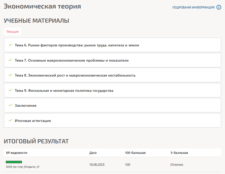 💯 Экономическая теория МТИ Синергия Ответы на тесты 6-9, итоговый тест, компетентностный