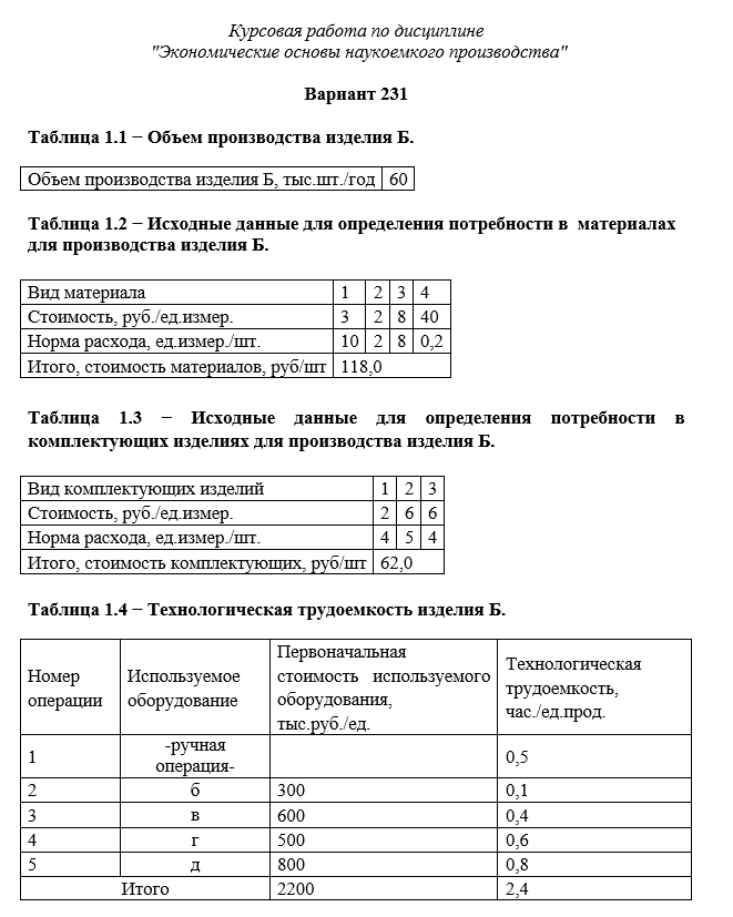 Для студентов МГТУ им. Н.Э.Баумана по предмету Экономические основы наукоемкого производстваВариант 231Вариант 231