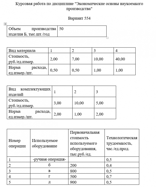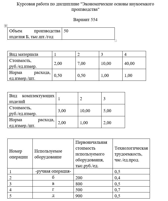 Для студентов МГТУ им. Н.Э.Баумана по предмету Экономические основы наукоемкого производстваВариант 554Вариант 554