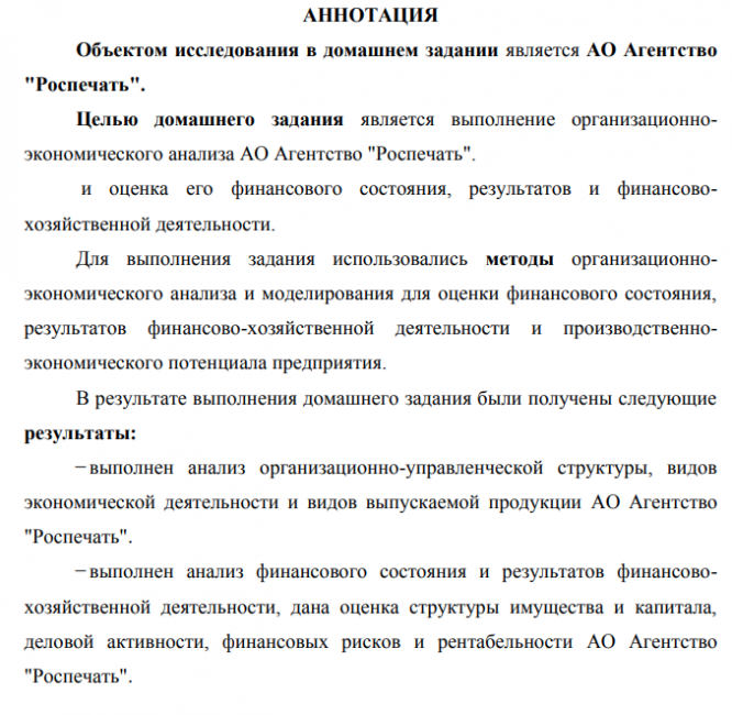 ДЗ: Организационно-экономический анализ АО Агентство Роспечать
