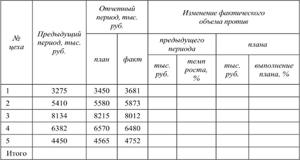 Задание 1. Оцените выполнение плана реализации строительно-монтажных работ отдельными производственными подразделениями (цехами) ООО «Строй-монтаж». Дайте оценку изменению объемов реализации СМР в отчетном году по сравнению с предыдущим, рассчитайте средние темпы роста и прироста показателей, сделать выводы.
