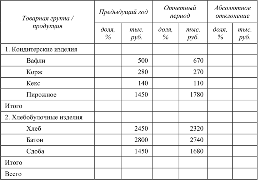 Задание 3. В целях изучения объема выпуска продукции проведите анализ структуры и динамики ассортимента выпускаемой продукции. Рассчитайте коэффициент ассортиментности. Сделайте вывод по результатам расчетов.
