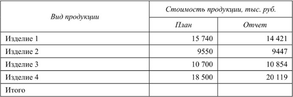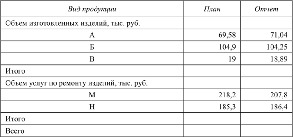 Задание 2. Оцените выполнение плана по ассортименту изготовленной продукции и услуг по ремонту. Рассчитайте коэффициент ассортиментности и процент выполнения плана. Сделайте вывод по результатам расчетов.