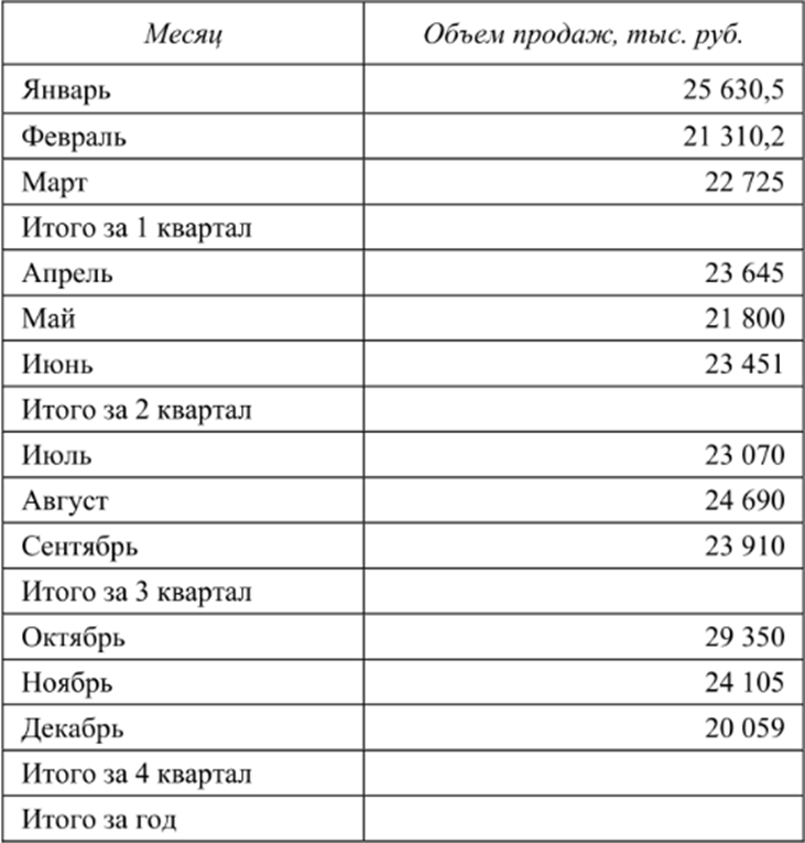 Задание 5. Дайте характеристику сезонности реализации услуг туристской фирмы. Исчислите коэффициенты сезонности для каждого месяца и размах вариации. Для более наглядного представления рекомендуется начертить график сезонных колебаний реализации услуг. Назовите мероприятия, которые позволят сгладить сезонные колебания спроса на туристические услуги.
