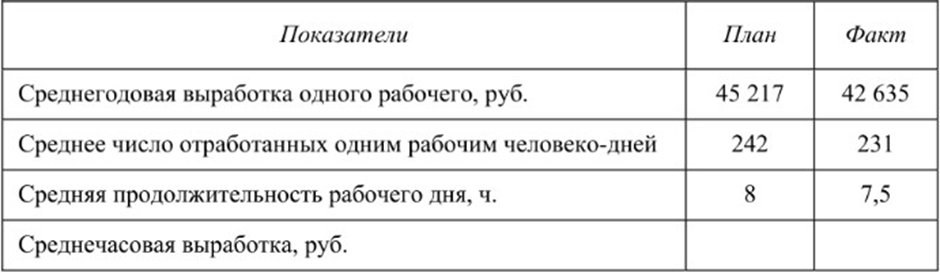 Задача 7. По имеющимся данным определите влияние основных факторов на выполнение плана среднегодовой выработки одного работающего методом цепных подстановок. Сделайте вывод.