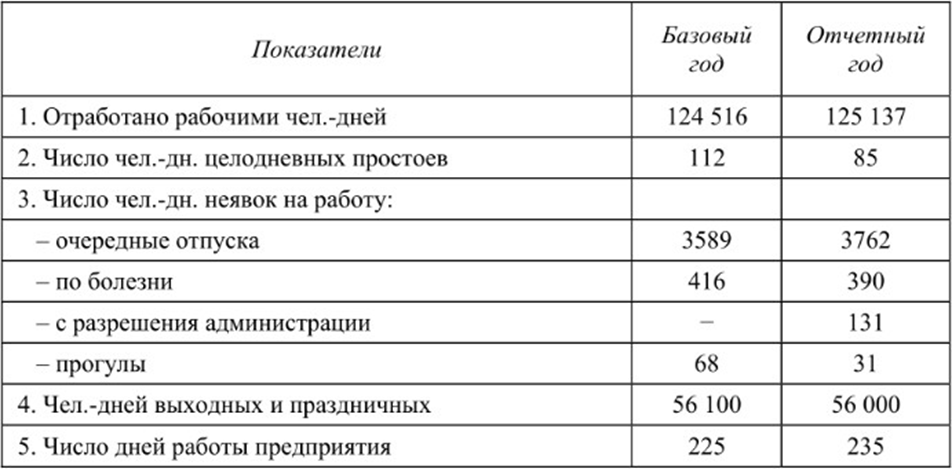 Задача 3. Определите календарный, табельный и максимально возможный фонды рабочего времени в человеко-днях; среднеявочное и среднесписочное число рабочих; структуру календарного, табельного и максимально-возможного фондов рабочего времени. Проанализируйте динамику показателей и структуры, сделайте выводы.