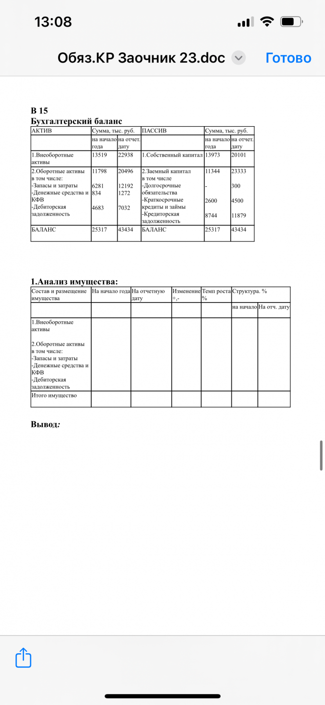 Задача: Анализ имущества