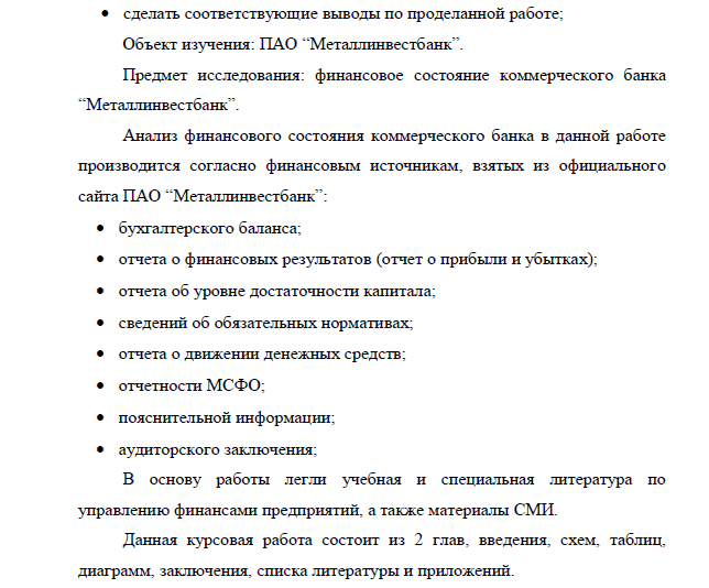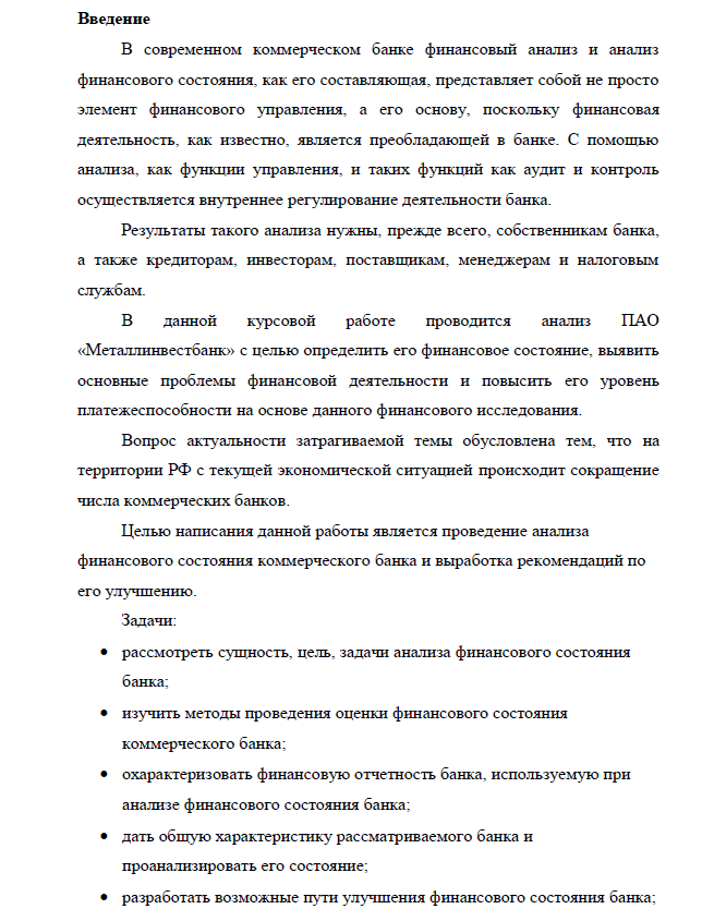 Курсовая работа: Анализ финансового состояния ПАО "Металлинвестбанк"