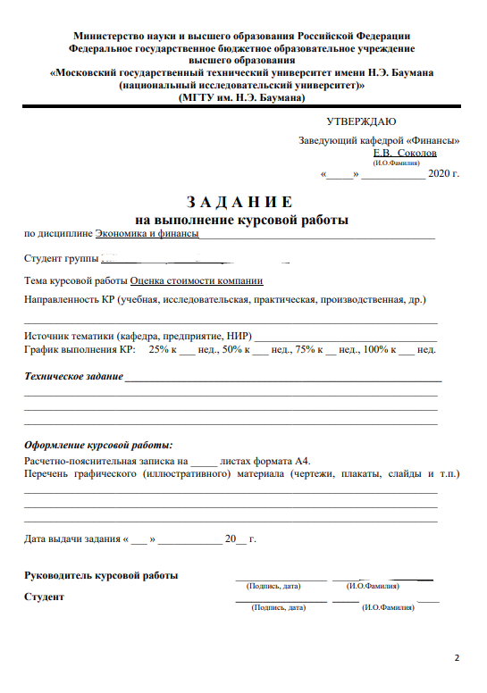 Для студентов МГТУ им. Н.Э.Баумана по предмету Экономика и финансыОценка стоимости компанииОценка стоимости компании