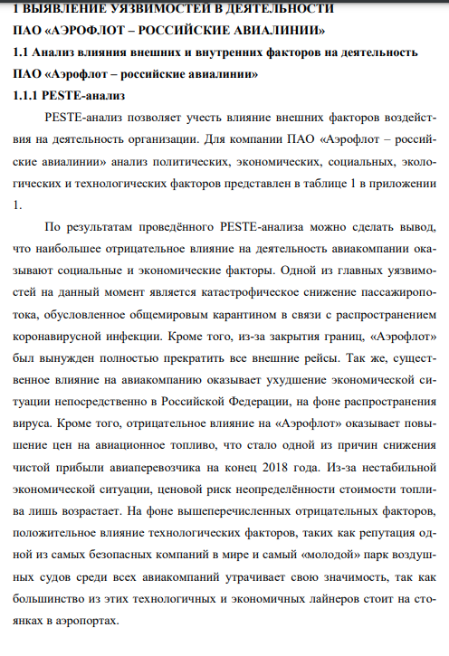 Главная » Учебные материалы » Экономика и финансы » Курсовые работы » МГТУ им. Н.Э.Баумана » 6 семестр » Анализ и управление рисками ПАО "Аэрофлот - российские авиалинии"
