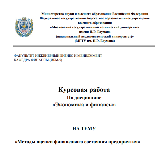 Главная » Учебные материалы » Экономика и финансы » Курсовые работы » МГТУ им. Н.Э.Баумана » 6 семестр » Методы оценки финансового состояния предприятия