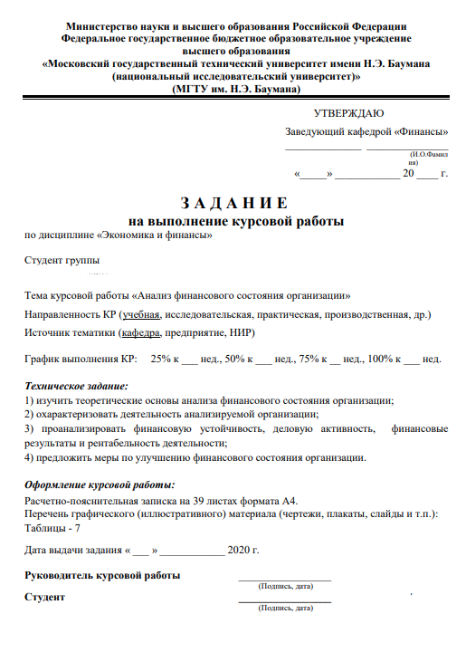 Для студентов МГТУ им. Н.Э.Баумана по предмету Экономика и финансыАнализ финансового состояния организацииАнализ финансового состояния организации