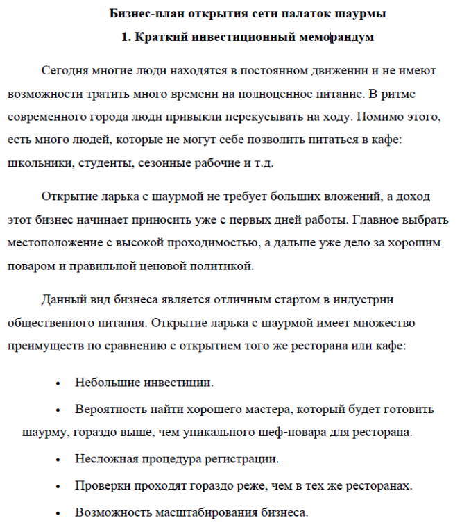 Лабораторная работа: Отчет по лабораторной работе "Бизнес-план открытия сети палаток шаурмы"