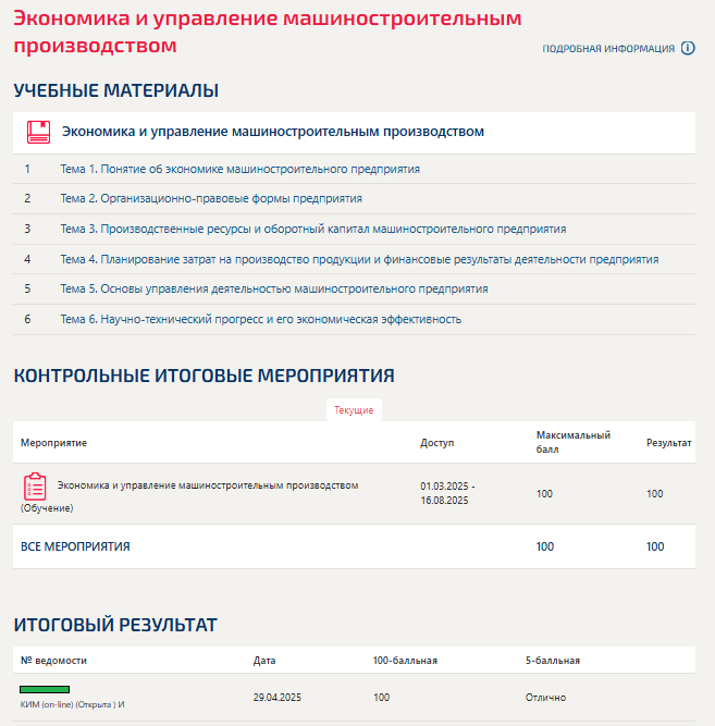 Экономика и управление машиностроительным производством Синергия (Темы 1-6) Ответы на итоговый тест