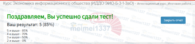 Курс Экономика информационного общества - Аттестационный курс Итоговая работа ЭИО-Б-3-1-Экз - 85%