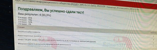 Для студентов ИДДО НИУ «МЭИ» по предмету Экономика информационного обществаПолный курс Итоговая работа - 83,3%Полный курс Итоговая работа - 83,3%