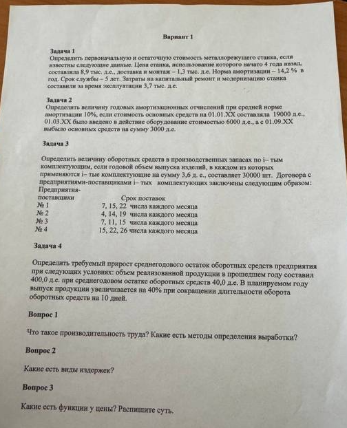 Ответы к контрольной работе: Основные средства (Оборотные средства) вариант 1