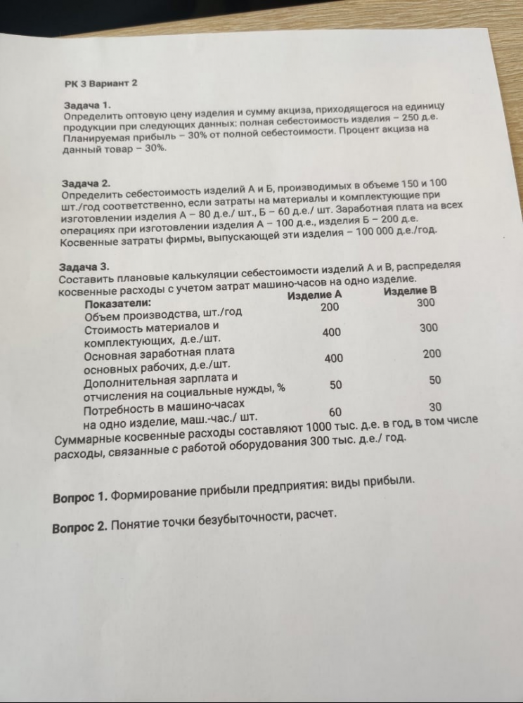 Ответы к контрольной работе 3: Ценообразование вариант 2