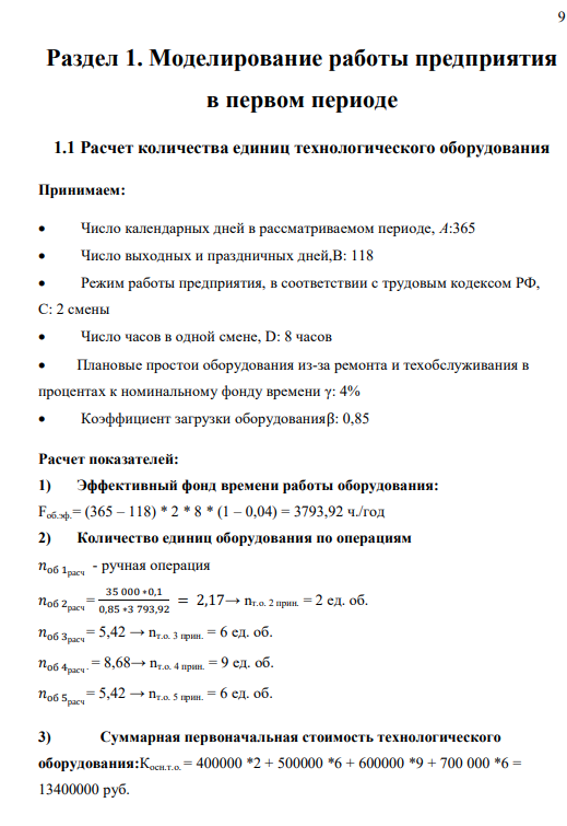 Данная курсовая работа является упрощенной моделью деятельности предприятия Курсовая работа состоит из двух разделов, отражающих два периода работы условного производственного предприятия. При выполнении первого раздела курсовой работы осуществляется расчет потребности в основных и оборотных средствах, расчет численности персонала и фонда оплаты труда, формирование сметы затрат на производство, расчет полной себестоимости продукции, составление БХС предприятия на начало периода, расчет планируемой и фактической цен изделия, составление отчета о прибылях и убытках по плановым и фактическим данным, формирование БХС на конец периода, расчет плановых и фактических значений основных показателей хозяйственной деятельности, анализ показателей и выводы о результатах деятельности.