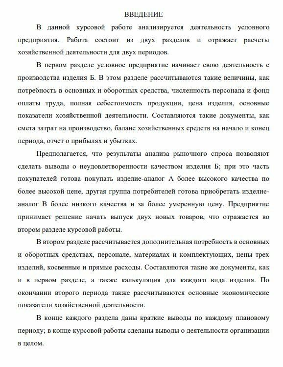 Назначение курсовой работы - изучить систему экономических показателей, характеризующих хозяйственную деятельность предприятия, и изучить взаимосвязи технических характеристик изготавливаемых изделий, состояний производственных мощностей, качества используемых ресурсов, и т.п. В процессе работы создаются основные документы, такие как: баланс хозяйственных средств предприятия на начало и конец периода хозяйственной деятельности, смета затрат на производство, отчет о прибылях и убытках. Все документы и расчеты подаются в упрощенной форме – не учитываются НДС, некоторые статьи баланса и т.п. После подведения итогов работы условного предприятия и подсчёта его показателей, делаются выводы о целесообразности данной производственной программы, эффективности её компонентов, коррективах и исправлениях