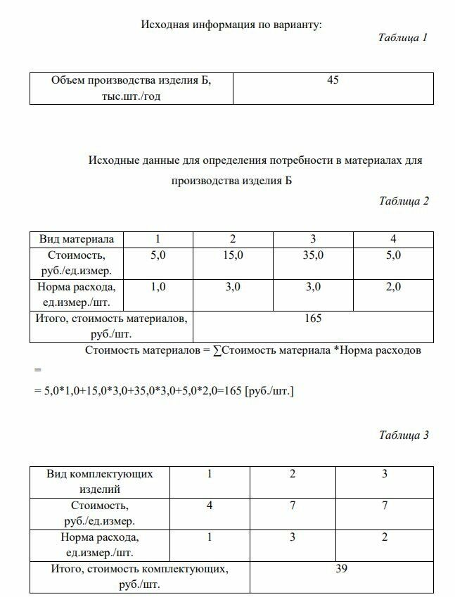 Цель данной работы – применить на практике полученные знания по организации наукоемкого производства на примере создания условного предприятия. Задачи: определить потребность в ресурсах: в оборудовании, материалах, комплектующих изделиях, количестве работников, финансах на первый период при производстве одного изделия Б; на основе полученных данных составить такие документы, как смета затрат на производства, баланс хозяйственных средств, отчет о прибылях и убытках; оценить полученные результаты; определить потребность в дополнительных ресурсах на второй период при выпуске трех изделий А, Б,В; составить смету затрат на производство, баланс хозяйственных средств, отчет о прибылях и убытках; проанализировать показатели и сделать выводы о результатах деятельности.