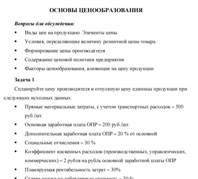 Семинар по теме №7 Экономика предприятия О.Н. Ряховская