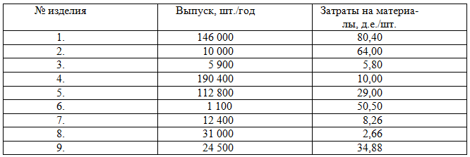 Из группы изделий, выпускаемых предприятием, выбрать приоритет-ные объекты для ФСА с помощью АВС-анализа. Исходные данные пред-ставлены в таблице.