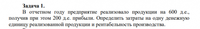 Задача 1: Основные показатели хозяйственной деятельности предприятия