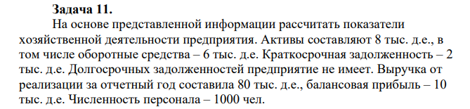 Задача 11: Основные показатели хозяйственной деятельности предприятия