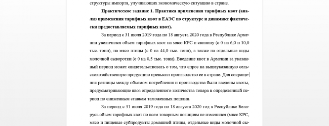 Практическое задание 1. Практика применения тарифных квот (анализ применения тарифных квот в ЕАЭС по структуре и динамике фактически предоставляемых тарифных квот).