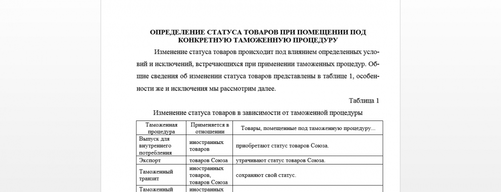Для студентов РТА в г. Владивосток по предмету ЭкономикаСтатус товара для таможенных целей в различных таможенных процедурах / Таможенные процедурыСтатус товара для таможенных целей в различных таможенных процедурах / Таможенные процедуры