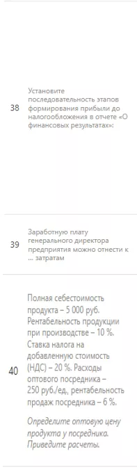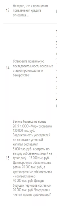 Ответы к экзамену: Итоговый тест по экономике и финансам организации