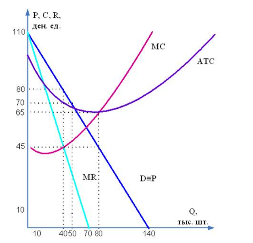 В сложившихся условиях монопольная прибыль при оптимальном объеме производства будет составлять ј тысяч денежных единиц.