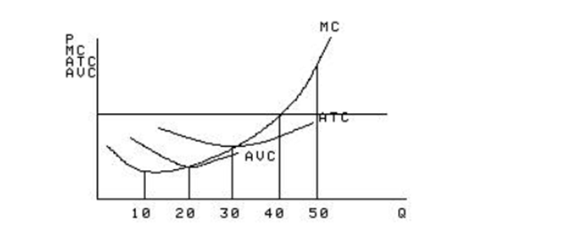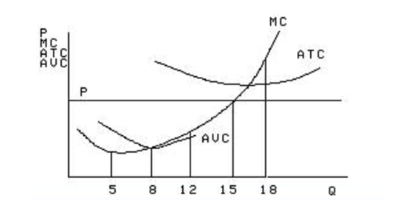 Исходя из представленного графика, определите равновесие при выпуске конкурентной фирмы, равном