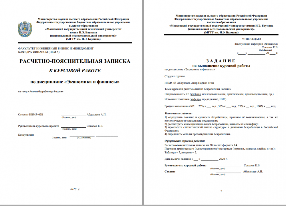 Курсовая по дисциплине Экономика и финансы на тему Анализ безработицы России_.pdf