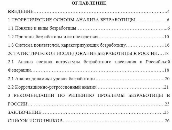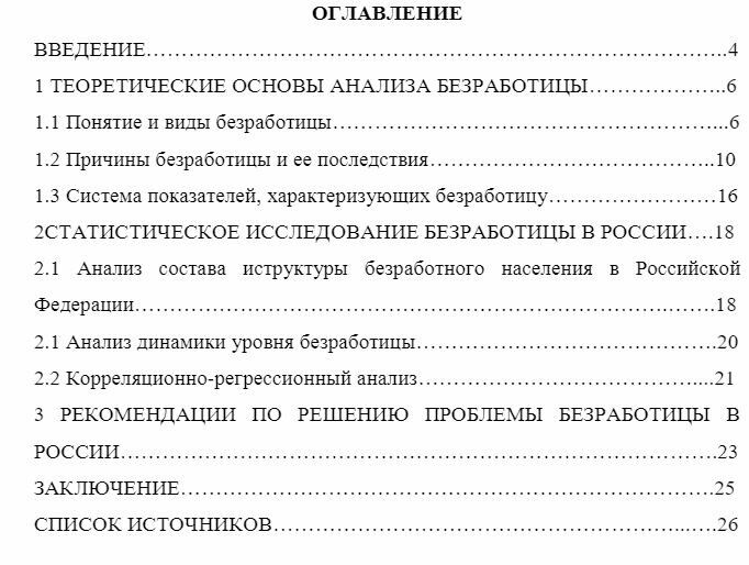 3) произвести статистический анализ структуры и динамики безработицы в Российской Федерации;