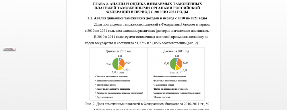 Анализ и оценка состава, структуры и динамики таможенных платежей в Российской Федерации в период с 2010 по 2021 годы / Таможенные платежи
