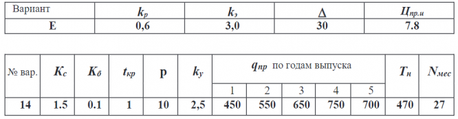 1. Новое изделие предполагается выпускать в течение 5 лет (tп == 5 лет);