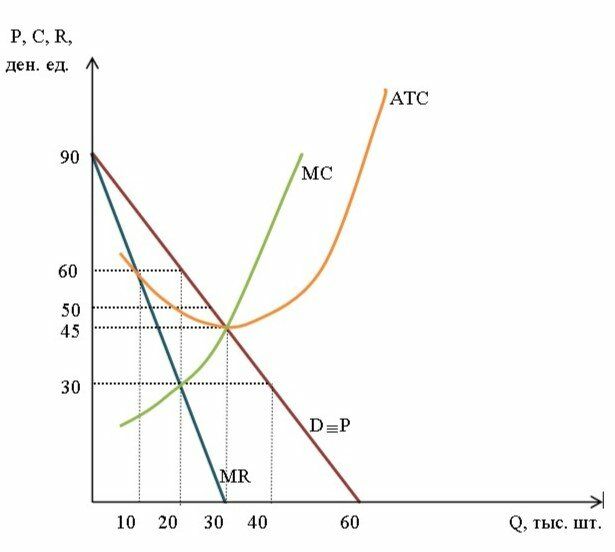 - монопольную рыночную цену при оптимальном объеме производствафирмы-монополиста;