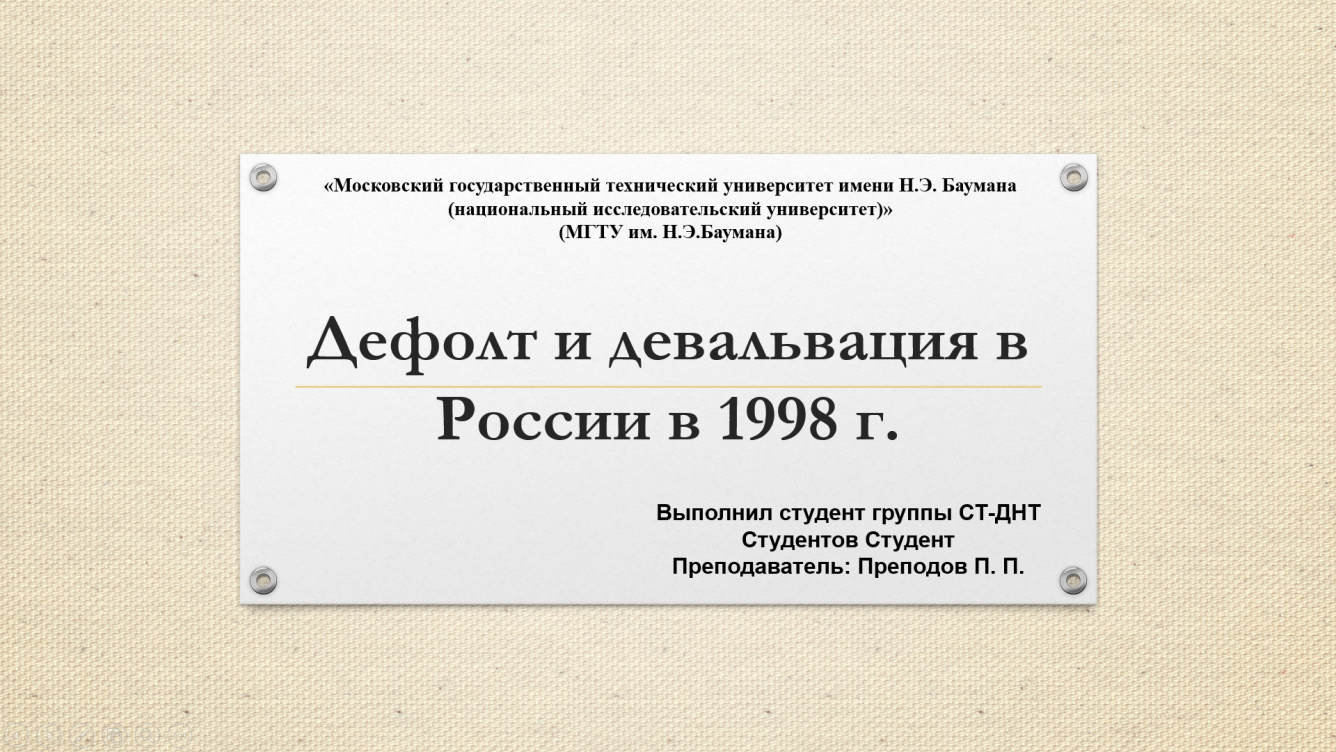Для студентов МГТУ им. Н.Э.Баумана по предмету ЭкономикаДефолт и девальвация в России в 1998 г.Дефолт и девальвация в России в 1998 г.