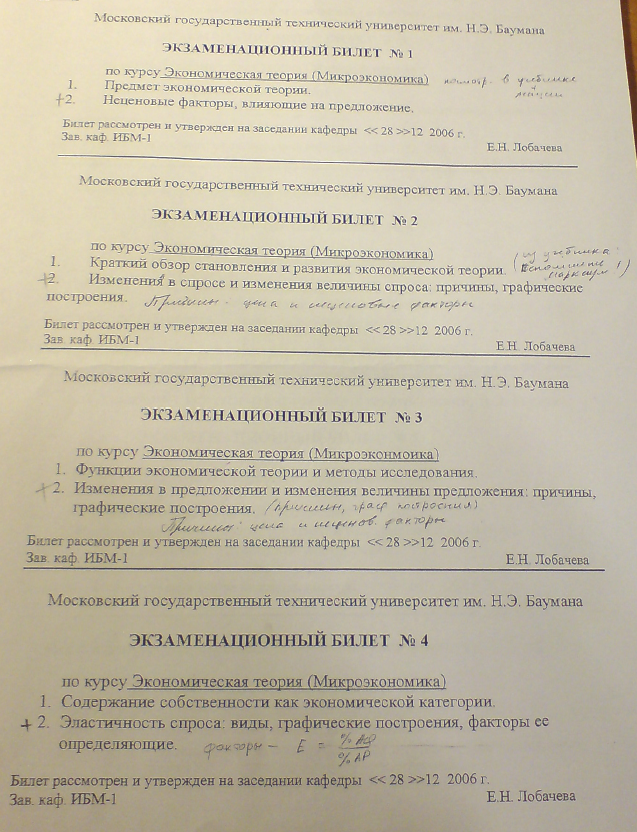 Для студентов МГТУ им. Н.Э.Баумана по предмету ЭкономикаБилеты к экзаменуБилеты к экзамену