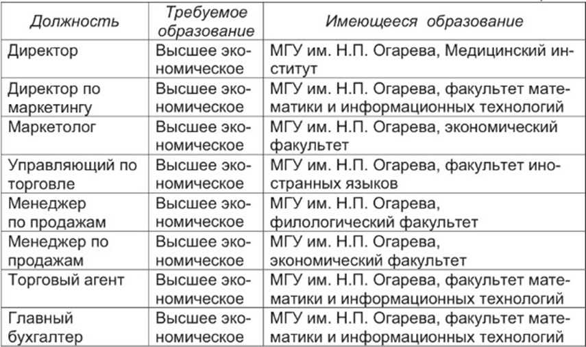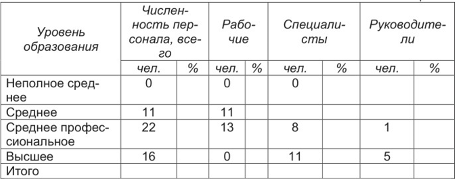 Рассчитайте недостающие показатели. Проанализируйте уровень образования персонала предприятия с точки зрения соответствия критериям кадровой безопасности. Сформулируйте вывод.