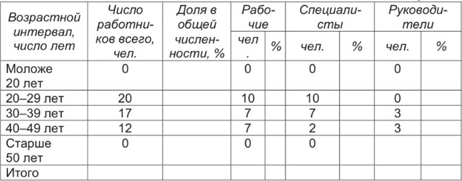 Рассчитайте недостающие показатели. Проанализируйте возрастной состав персонала предприятия с точки зрения соответствия критериям кадровой безопасности. Сформулируйте вывод.