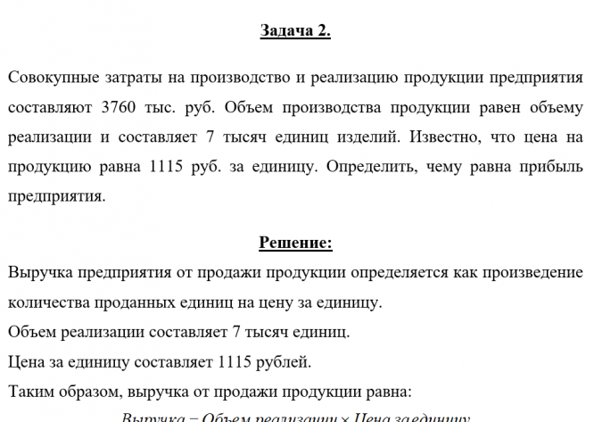 Совокупные затраты на производство и реализацию продукции предприятия составляют 3760 тыс. руб. Объем производства продукции равен объему реализации и составляет 7 тысяч единиц изделий. Известно, что цена на продукцию равна 1115 руб. за единицу. Опре