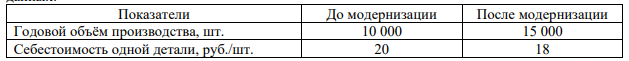 Определить срок окупаемости и экономическую эффективность капитальных затрат на модернизацию оборудования на участке механического цеха при наличии следующих данных: