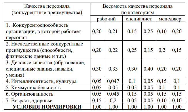 Задача: Оценить конкурентоспособность менеджера на основании экспертных оценок конкурентных качеств, приведенных в таблице.